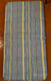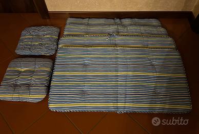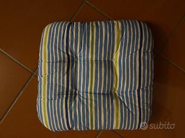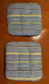 Vendo 4 cuscini per sedie sdraio e 2 cuscini per sedie da giardino. Tessuto a righe colorate. Mai utilizzati e conservati in confezione sotto vuoto. Le dimensioni sono: - 4 Cuscini per sedie sdraio 51 * 100 - 2 Cuscini per sedie 36 * 38 Praticamente nuovi. Viste le caratteristiche del prodotto e la delicatezza del trasporto, possibilmente acquirenti in zona per organizzare la consegna.