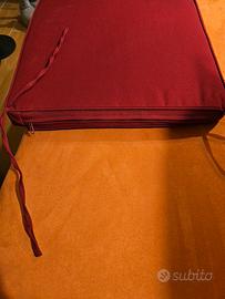 set di 4 cuscini per serie da giardino imbottiti lavabili e sfoderabili con chiusura lampo misure 40x40 con lacci eleganti utilizzabili sia dal lato a righe sia dal lato tinta unita bordeaux mai usati