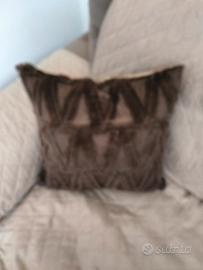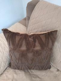 Cuscino decorativo con textura geometrica e con rivestimento effetto pelliccia. Misura cm 45 x 45. Vendesi senza imbottitura interna.