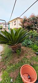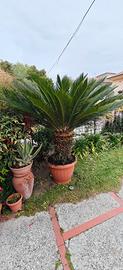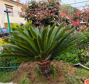 vendo stupenda cycas o cicas in un vaso di diametro di 60cm ( la foglia più alta arriva a 1.80 mentre il tronco è interrato è di 80 cm e di diametro è 100 cm..la foglia è lunga un metro) era interrata in giardino dal 2014 in ricordo di un cane morto cui dormiva proprio lì... tolta e messa in un bel vaso. in realtà poi sarebbero 2 ma una l'abbiamo tolto le foglie ( il busto ha la stessa grandezza dell'altra ). è stata impiantata nel vaso circa un mesetto fa. bellissima per chi ha posto in giardino . pesa parecchio. La Cycas revoluta è comunemente conosciuta come palma nana o palma del sago (spesso citata come sago palm o sagù), sebbene non sia una vera palma. A causa della sua antica origine, viene talvolta definita "fossile vivente" o "pianta del Mesozoico" PS. in due persone robuste abbiamo fatto fatica a spostarla... prezzo trattabile