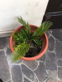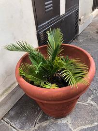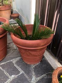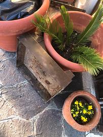 In vaso di coccio decorato con sottovaso in metallo. Ne ho due. Entrambe 90,00 euro. Una 50,00€. Diametro vaso 45 altezza 43