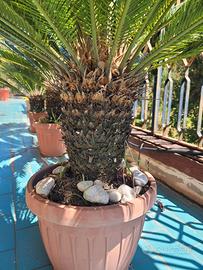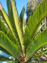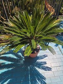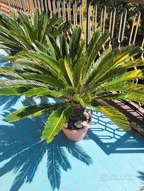 Esemplare di circa 15 anni di età, in ottima salute. La sua altezza in questo momento è più o meno di 90 cm dalla terra (115 cm dal pavimento), il suo diametro massimo è di circa 130 cm. Nel giro di foglie più vecchio ha qualche scottatura da sole risalente all'agosto del 2024, perchè la sua esposizione è in pieno sole. A giugno farà un nuovo giro di foglie giovani. Per avere un'idea delle proporzioni in foto ne è presente una con una paletta classica paletta per scopa. Fusto: - altezza terra <-> giro foglie inferiore di 26 cm circa - diametro parte bassa: circa 14 cm - diametro parte alta: circa 20 cm Foto recenti, del 18/04/2026 Solo scambio a mano a Cagliari La preparerò con le foglie legate, il trasporto potrà avvenire con una macchina coi sedili posteriori abbassati o un piccolo furgone. Cedo senza vaso. Vendo perchè le sue dimensioni per me iniziano ad essere un po' eccessive, e lei starebbe probabilmente meglio in un giardino o in un terrazzo spazioso. In un vivaio/garden una pianta di questa età e queste dimensioni a questo prezzo non si trova :-)