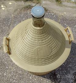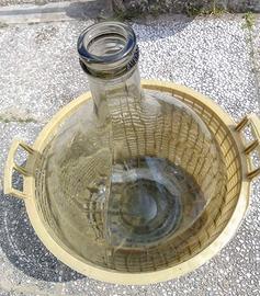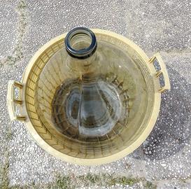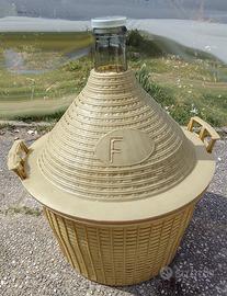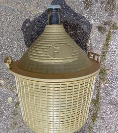 Damigiana in vetro rivestita da un cesto di plastica. Capacità 25 litri. Usata solo un paio di volte per contenere vino. Ottimo stato di conservazione, come da foto.
