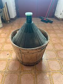 Damigiana in vetro, con cesta in legno e plastica .. 54 litri
