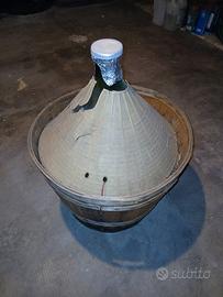Damigiana da 54 litri, cestello in legno e collare in plastica un po usurati, nelle foto si vedono le parti con i difetti, sistemabili comunque. Lavata accuratamente dopo ultimo travaso
