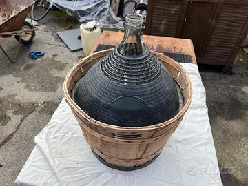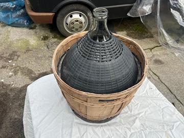 Damigiana con relativo contenitore in legno