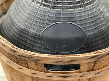 Damigiana con relativo contenitore legno plastica litri 34 vetro bianco marca AMBROSIO .