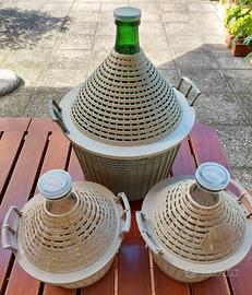Vendo damigiane in vetro per vino con ceste in plastica . 1 da 20 lt e 2 da 5 lt