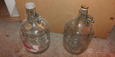 Damigiane in vetro da 5litri con relativo tappo. Buona soluzione per chi deve conservare olio o vino. Prezzo 15 euro totali li vendo in coppia