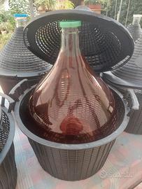 Damigiane in vetro con cesto in plastica complete di tappo.