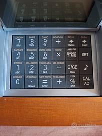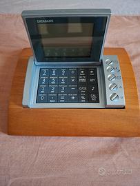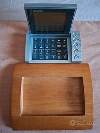 Vendo come da foto questa bellissima databank con calcolatrice orologio calendario ecc.Con base di legno compresa pila bottone nuova.