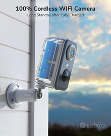 【Audio bidirezionale & IP66 resistente alle intemperie】 telecamera di sorveglianza wifi con altoparlante integrato e microfono a cancellazione del rumore. Con questa telecamera esterna, puoi anche chattare con fattori amichevoli o vicini in movimento. O installalo in giardino per monitorare i tuoi bambini piccoli quando giocano fuori. IP65 resistente alle intemperie lo rende adatto per uso esterno. Questa fotocamera wifi batteria funziona sotto -22℉ a 122℉.