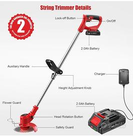 Come da oggetto vendo causa inutilizzo decespugliatore nuovo (aperto solo una volta per vedere se funzionava e richiuso). Acquistato 16 Febbraio 2026 gode di garanzia Amazon fino a Febbraio 2028. Decespugliatore elettrico Bamse che eroga 11.000 giri al minuto a vuoto, fornendo potenza sufficiente per tagliare senza sforzo erbe dense e cespugli. Pesa solo 1,5 kg ed non stanca anche usarlo tutto il giorno, anziani e donne possono usarlo. Equipaggiato con due batterie da 2,0 Ah e un caricatore rapido, raggiunge un'autonomia eccezionalmente estesa. 【Taglio Multifunzionale】Questo decespugliatore a batteria presenta un design a doppia lama con lame standard a forma di diamante e lame circolari, niente più plastica fragile. Lama a forma di diamante in metallo: ideale per erbacce e cespugli di medio spessore. Lama circolare/lama a sega: ideale per rami spessi, piccoli arbusti e bambù. Il suo diametro di taglio di 150 mm copre un'area più ampia, gestendo senza sforzo tutte le operazioni di rifinitura. 【Prima la Sicurezza】:Il Tagliabordi a Batteria presenta un doppio blocco di sicurezza per prevenire efficacemente avvii accidentali. Basta premere contemporaneamente il pulsante di sicurezza e l'interruttore di accensione per attivare l'attrezzo. Il suo design protettivo rotante minimizza l'espulsione imprevista di detriti durante il taglio, migliorando significativamente la comodità operativa. 【Design ergonomico】Il decespugliatore è dotato di un'asta telescopica regolabile, che può essere regolata liberamente tra 85 e 120 cm, e di regolare la lunghezza appropriata in base ai diversi ambienti. Per informazioni non esitate a contattarmi