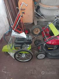 Decespugliatore a Ruote Grillo HWT 600 WD .Pratico e maneggevole è dotato di un motore monocilindrico Honda GCV 170 OHC, 4.8 HP indicato per lo sfalcio in zone rustiche e nei giardini anche nelle situazioni più impegnative. Motore Honda GCV 170 OHC Larghezza di taglio 60 cm Altezza di taglio regolabile a 1.5 – 3 – 5 – 6 cm Peso 47 Kg. Usato 2 ore.