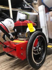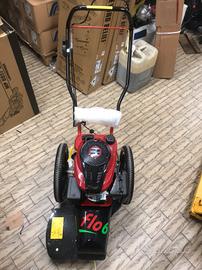 Decespugliatore a ruote di altissima qualità con robustissimo telaio in acciaio e motore da centimetri cubici 170 pari a cavalli sette.sistema di avviamento facilitato con autoavvolgente e Primmer