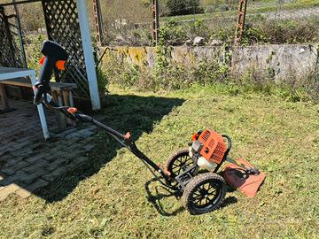 vendo per inutilizzo decespugliatore con ruote ,come da foto ,funzionante , usato poche ore