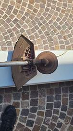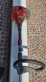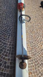 usato ma ancora in ottime condizioni, completo di libretto istruzioni - disponibili altre foto su richiesta Modello dotato di bobina digitale che facilita l’avviamento in ogni condizione. Filtro aria in carta che consente un’eccellente protezione del motore anche in ambienti molto polverosi, garantendone una maggiore durata nel tempo. Convogliatore del motore in alluminio che offre massima resistenza nel tempo anche a fronte di usi intensivi e prolungati della macchina. Coppia conica leggera e di piccole dimensioni che riduce il peso in punta e permette una migliore guidabilità della macchina. Attacco della coppia conica con perno maschio M10. Impugnature ergonomiche (in gomma sovrastampata quella circolare, in alluminio quella doppia) che garantiscono massimo comfort all’operatore in ogni posizione di lavoro e un’assenza di vibrazioni trasmesse alle sue mani. Dati tecnici Potenza/Cilindrata 1,9 HP – 1,4 kW/36,3 cm³ Diametro del tubo 28 mm Impugnatura manubrio Dotazione di taglio testina Load&Go Ø 130 mm con filo Ø 3,00 mm – disco a 3 denti Ø 255 mm Frizione sì Cap. serb. carburante 0,75 L Peso 7,8 Kg
