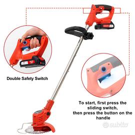 【Elenco prodotti】 1 decespugliatore a batteria, 2 pacchi batteria, 1 caricabatteria, 2 lame diamantate in lega, 4 lame dritte, 10 lame in plastica, 4 fili per erba, forbici manuali, un paio di guanti, occhiali di sicurezza, chiave inglese.