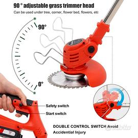 【Combinazione di 4 Tipi di Lame】Il tagliaerba a batteria è dotato di 4 tipi di lame ad alta efficienza: le lame in plastica e le corde da taglio sono adatte per tagliare erba giovane molto tenera; le lame ad angolo retto sono adatte per tagliare erbacce, piccoli arbusti e rami ; Lame per seghe circolari Adatte per potare arbusti e alberi più spessi.