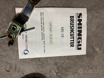 Decespugliatore marca Shingu MS-18 come nuovo perfetto usato veramente pochissimo sempre stato riposto all'interno di una serra come nuovo, accessori in dotazione, matassa di filo in nylon e protezione viso, cinghia prezzo non trattabile.