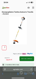 Salve, vendo Decespugliatore sthil fs 55r pari al nuovo usato si è no 3/4 volte leggero e pratico e molto facciale al avviamento