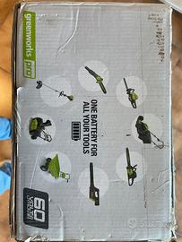 Vendo decespugliatore GreenWorks Pro GD60LT senza batteria, condizioni pari al nuovo. Testina batti e vai, possibilità di chiuderlo a metà per salva spazio.