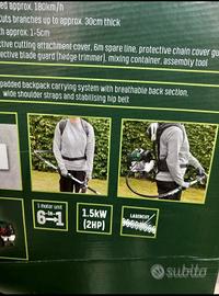 LEGGI BENE. Vendo per mancato uso, causa infortunio spalla e schiena, N°2 Decespuliatori Multiatrezzo a spalla della PARKSIDE, (decespugliatore, tagliasiepi, tagliarami, taglia bordi, soffiatore ecc. Uno nuovo ancora nella scatola mai usato e l'altro con poche ore di lavoro e usato solamente come decespugliatore, dunque gli attrezzi ancora nuovi. Quello usato ha un piccolo problema alla leva dell'acceleratore, riparabile per chi ha manualità. Pagato l'anno scorso singolo €249,00 Vedasi scontrino LIDL Vendo in blocco a € 250,00, prezzo trattabile Garanzia sfruttabile sino a giugno.