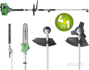 È stato usato abbastanza solo come decespugliatore, mentre una sola volta come tagliasiepi e mai come potatore (la catena della motosega è ancora imballata e da montare sulla barra) completo di tutti gli oggetti e accessori presenti all'inizio e le relative istruzioni.