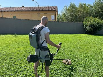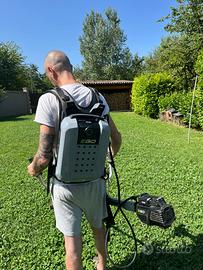 decespugliatore con zaino professionale potentissimo, completo di batti e vai, disco e istruzioni. durata batteria 4-5 ore usati pochissimo pari al nuovo