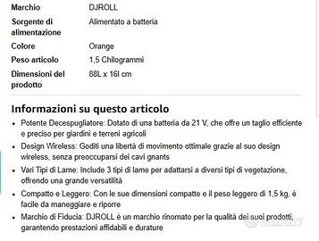 DJROLL Decespugliatore Senza Fili 21V con 2 Batterie e 3 Lame (Erba/Arbusti), Leggero per Giardino, Prato, Campi - Taglio Efficiente Senza Cavo