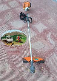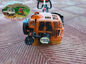 Decspugliatore Stihl FS80. Peso: 5 kg Potenza: 0.9 kW Alimentazione: Motore a scoppio 2-MIX (miscela) Cilindrata: 24 cc Completamente revisionato, inclusa testina multifilo in lega.