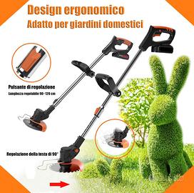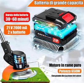 Decespugliatore a Batteria, Tagliabordi a Batteria, Decespugliatore Elettrico con 2 batterie 21V 2.0Ah e caricatore, Tagliabordi Elettrico Con Lama in Metallo, Per i Giardini Domestici