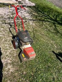 Il decespugliatore a ruote TR 50 è la macchina ideale per la pulizia del vostro giardino, lavorando in modo efficiente ed ergonomico. Il Decespugliatore TR 50 ha una larghezza di taglio di 50 cm, agevola e velocizza le operazioni di pulizia di erba su superfici come aree verdi, giardini, parchi e per la pulizia di bordi e zone ove i normali rasaerba non possono accedervi. La sua conformazione compatta e leggera lo rende accessibile anche negli spazi ristretti e la sua testina di taglio “decentrata” rispetto alla carreggiata, consente una pulizia dei bordi più accurata. È la macchina alternativa ai decespugliatori classici portatili, disponendo però di più potenza e larghezza di taglio e non da meno, lavorando con più comfort essendo semovente su ruote da 280 mm di diametro. È equipaggiata con un potente motore a benzina 4T e di una trasmissione meccanica monomarcia per avanzare anche su terreni leggermente sconnessi senza difficoltà. La testina di taglio può ospitare 2 fili doppi di nylon fino a 5 mm di diametro max per una migliore efficacia di taglio. Tutto ciò si traduce in efficienza di lavoro in modo sicuro ed ergonomico! E stata acquistata nel 2025 ed e’ stata usata pochissimo. Solo Consegna a verona sud.