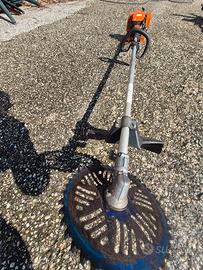 vedesi decespugliatore con disco per tagliare spini e piccole siepi.