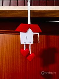 Fuori porta fatto a mano in pannolenci, iniziali cucite su cuori,inserti color argento
