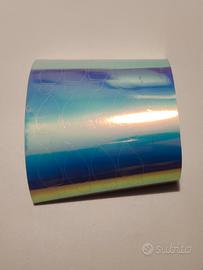 Le impronte sono sagomate su vinile permanente colore cangiante che rimane fluorescente al buio.