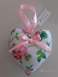 Romantica ed elegante decorazione da appendere a forma di cuore in stile shabby chic.