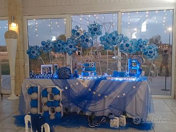 Personalizza la tua FESTA Affittasi decorazione floreale di fiori artigianali in organza blu royal /argento per feste/18°/eventi/compleanni/anniversari