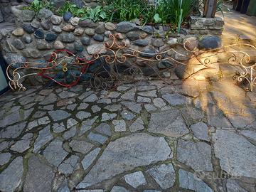 6 elementi decorativi in ferro battuto. Il più lungo decorava la parte superiore di un cancello (3 metri di lunghezza). Si vendono tutti insieme o al pezzo. Il prezzo si riferisce all'insieme.