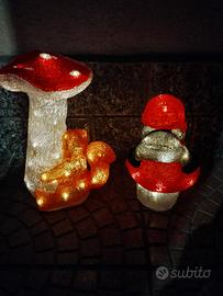 - Fungo con gnomo h. 29 cm con 32 led luce calda filo lungo 5m materiale plastico
