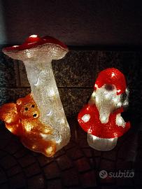 - Fungo con scoiattolo h.40 cm con 40 led luce calda, filo lungo 5m materiale plastico.
