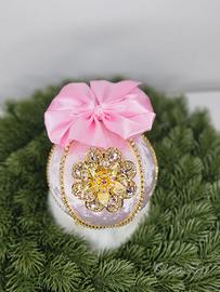 Palle di Natale fatte a mano con strass in vetro. Una diametro 10cm, altra 8cm.
