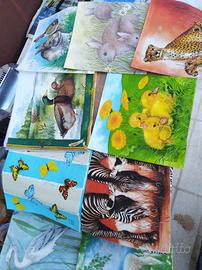 12 confezioni da circa 15 pezzi di tovaglioli x decoupage, più molti altri tovaglioli sfusi, varie categorie e personaggi, dai cartoni animati, fiori, animali, paesaggi... etc etc...