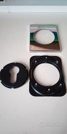 Kit Defender e mostrina della Securemme,per cilindro europeo.Defender conico modello 4251E0L, diametro 50mm, altezza 25mm, interasse 38mm per viti M6, materiale carbonitrurato con durezza >60 HRC, antitrapano,antitaglio,antitubo,antistrappo,con piastrina rotante guida chiave in acciaio e camera di rinforzo proteggi cilindro.Cover e mostrina ovale di colore ottone lucido.Mostrina interno porta di colore cromo lucido,misura 62x82mm.Tutto il kit è stato usato per esposizione,in ottime condizioni,con lievissimi segni di usura vedibili solo da molto vicino.