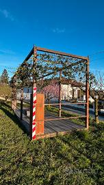 Vendesi dehor cambiato per riduzione spazio concesso dal comune. Lungo 7 metri e largo 2,10 (larghezza standard parcheggio) completo di telo bianco/crema di copertura in tessuto spalmato in pvc. Venduto integralmente con palchetto in legno, su richiesta riverniciabile prima del ritiro, e vasi con gelsomini su cavi laterali. Adatto anche come struttura coperta da giardino, gazebo. Prezzo trattabile.