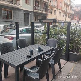 Dehors mod estivo e invernale con un unica struttura in metallo verniciata a polvere con pavimentazione 50 x 50 in cemento efetto legno trasformabile da estivo a invernale in meno di 1 ora con vetri 3 +3 antisfondamento da 110 per la versione estiva e un vetro da 50 cm per aggiunta per la trasformazione a invernale da cem 160 per informazioni e preventivi 3394239510 in tutta italia
