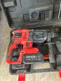 Completo di caricabatterie e due batterie da 21v e 4000ma, a corredo ci sono anche 4/5 punte con attacco sds