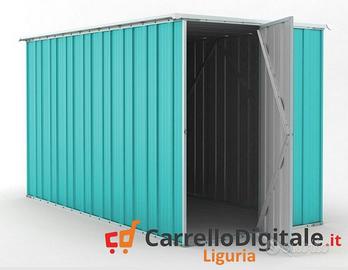 Il box prefabbricato 175 x 307 viene venduto nuovo con garanzia e con fattura o ricevuta fiscale. Viene consegnato all'indirizzo che ci verra' comunicato in kit di montaggio comprensivo di tutta la ferramenta necessaria a montarlo. p>Box garage casetta prefabbricato in lamiera di Acciaio Zincata grecata con Saracinesca NUOVO, perfetto per il giardino usato come capanno per ricovero rimessa attrezzi o come riparo per auto moto, baracca da cantiere o box attrezzi SPEDIZIONE IN TUTTA ITALIA INCLUSA NEL PREZZO * Dimensioni esterne (incluso tetto): 1.75 m (Larghezza) x 3.07 m (Lunghezza) x 1.82 m (Altezza) * Dimensioni esterne (solo perimetro): 1.55 m (Larghezza) x 3.07 m (Lunghezza) x 1.82 m (Altezza Max) * Dimensioni interne: 1.51 m (Larghezza) x 3.03 m (Lunghezza) x 1.80 m (Altezza Max) * Altezza della parete: 1.80 m * Dimensioni porta anteriore: 0.73 m (Larghezza) x 1,78 m (Altezza) * Metri quadri: 5.4 * Peso struttura: 95 kg * Spessore pannelli: 0,32 mm * Spessore profili: 0,70 mm Telefono/Whatsapp: A soli 443 euro IVA, spedizione ed assicurazione sulla spedizione inclusi nel prezzo. Possibilita' di acquisto con pagamento alla consegna (SOLO CONTANTI no assegni) Attenzione, il metallo utilizzato non e' ferro o alluminio ma acciaio zincato. Il box in acciao in questione non e' coibentato (pannelli sandwich) ma puo' essere modificato facilmente e con una spesa minima. La casetta da esterno e' composta da profili e pannelli in acciaio zingato e verniciato in maniera da poter resistere alle intemperie. A differenza di quelli in legno i box in lamiera zincata non necessitano di nessuna manutenzione Telefono/Whatsapp: