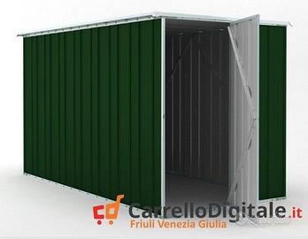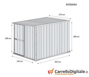 Il box prefabbricato 175 x 307 cm viene venduto nuovo con garanzia e con fattura o ricevuta fiscale. Viene consegnato all'indirizzo che ci verrà comunicato in kit di montaggio comprensivo di tutta la ferramenta necessaria a montarlo. Box garage casetta prefabbricato in lamiera di Acciaio Zincata grecata con Saracinesca NUOVO, perfetto per il giardino usato come capanno per ricovero rimessa attrezzi o come riparo per auto moto, baracca da cantiere o box attrezzi SPEDIZIONE IN TUTTA ITALIA INCLUSA NEL PREZZO -Dimensioni esterne (incluso tetto): 1.75 m (Larghezza) x 3.07 m (Lunghezza) x 1.82 m (Altezza) -Dimensioni esterne (solo perimetro): 1.55 m (Larghezza) x 3.07 m (Lunghezza) x 1.82 m (Altezza Max) -Dimensioni interne: 1.51 m (Larghezza) x 3.03 m (Lunghezza) x 1.80 m (Altezza Max) -Altezza della parete: 1.80 m -Dimensioni porta anteriore: 0.73 m (Larghezza) x 1,78 m (Altezza) -Metri quadri: 5.4 -Peso struttura: 95 kg -Spessore pannelli: 0,32 mm -Spessore profili: 0,70 mm Telefono/Whatsapp: A soli 443 euro IVA, spedizione ed assicurazione sulla spedizione inclusi nel prezzo. Possibilità di acquisto con pagamento alla consegna (SOLO CONTANTI no assegni). Attenzione, il metallo utilizzato non è ferro o alluminio ma acciaio zincato. Il box in acciaio in questione non è coibentato (pannelli sandwich) ma può essere modificato facilmente e con una spesa minima. La casetta da esterno è composta da profili e pannelli in acciaio zincato e verniciato in maniera da poter resistere alle intemperie. A differenza di quelli in legno i box in lamiera zincata non necessitano di nessuna manutenzione Contattaci subito per avere maggiori informazioni e scoprire altri modelli che potrebbero fare al caso tuo Oppure inviaci un messaggio con il tuo numero e ti richiameremo non appena possibile Telefono/Whatsapp: