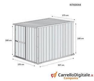 * Dimensioni esterne (incluso tetto): 1.75 m (Larghezza) x 3.07 m (Lunghezza) x